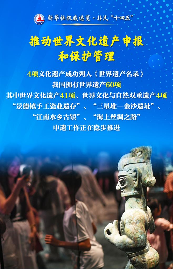 ??新發(fā)現(xiàn)文物數(shù)量超過13萬處、全國(guó)備案博物館數(shù)量達(dá)到7046家、中國(guó)世界遺產(chǎn)總數(shù)達(dá)到60項(xiàng)……國(guó)新辦10日舉行“高質(zhì)量完成‘十四五’規(guī)劃”新聞發(fā)布會(huì),國(guó)家文物局介紹文物事業(yè)高質(zhì)量發(fā)展有關(guān)情況,并就群眾關(guān)心的文物保護(hù)、博物館熱等問題做了詳細(xì)解答。跟隨這組海報(bào),一起了解。