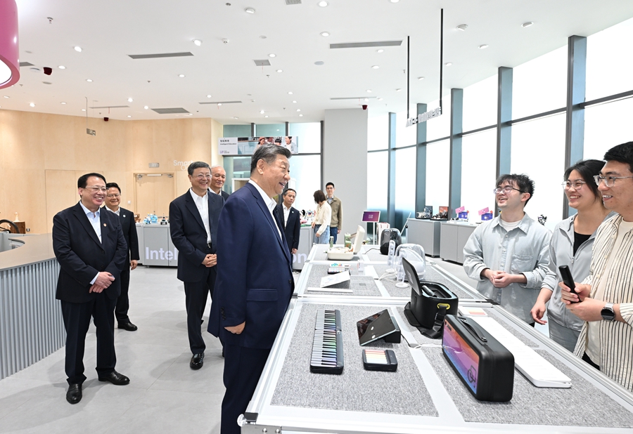 ??4月29日,中共中央總書記、國家主席、中央軍委主席習近平在上??疾臁_@是習近平在位于徐匯區(qū)的上?!澳K倏臻g”大模型創(chuàng)新生態(tài)社區(qū)人工智能產品體驗店考察。新華社記者 謝環(huán)馳 攝