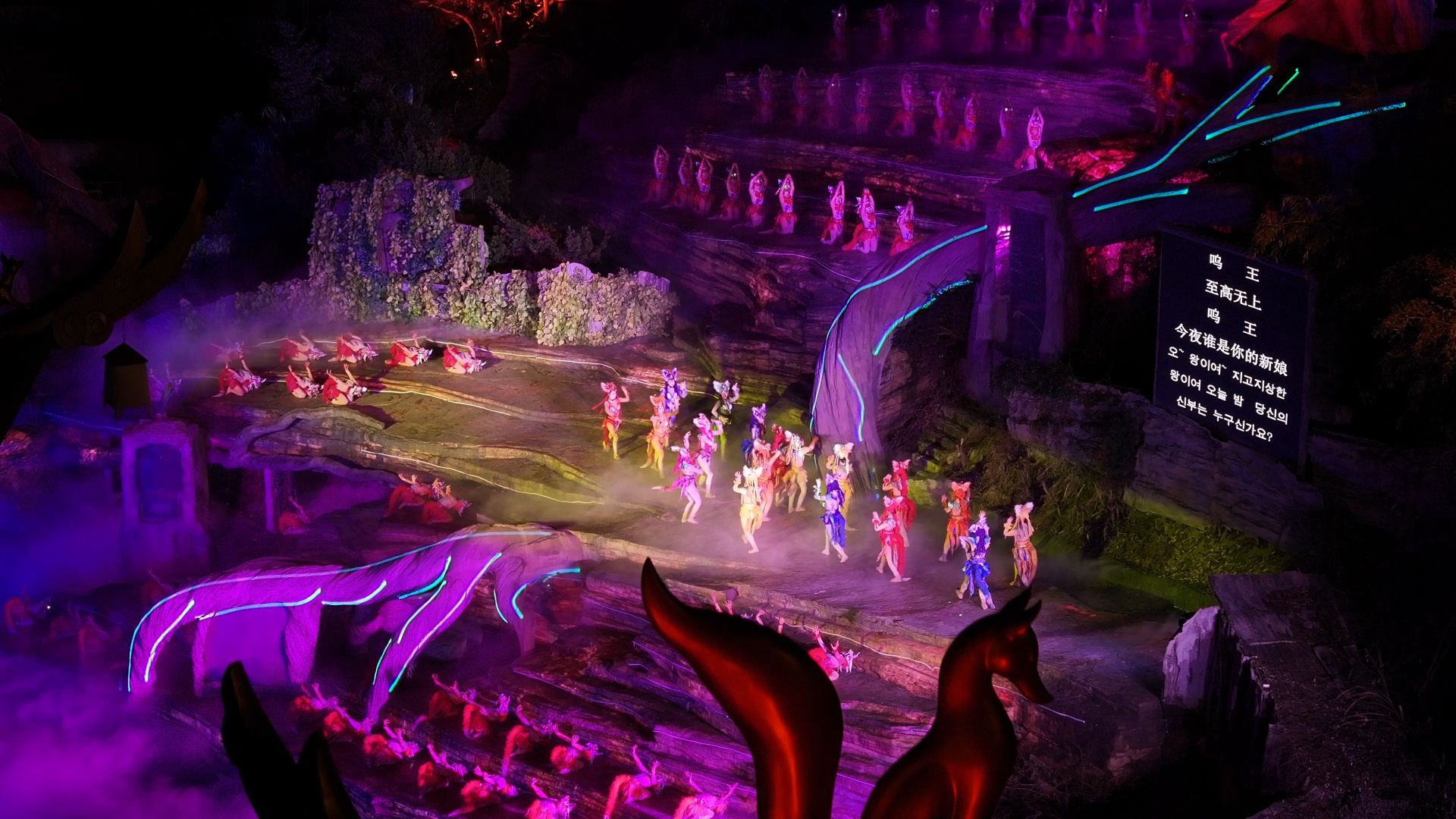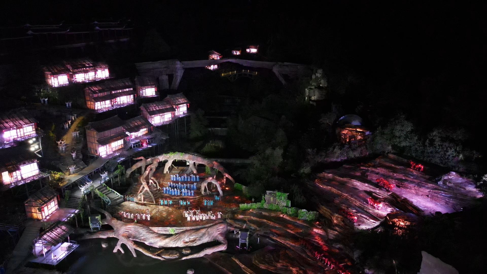 演出以天門山壯麗自然風(fēng)光為幕布,融合民歌、舞蹈與民間故事,借助現(xiàn)代聲光電技術(shù),打造出奇幻唯美的視聽盛宴。劇中“狐仙”與“樵夫”跨越人仙界限的愛情故事,配合山水實景的晝夜更迭與四季流轉(zhuǎn),令觀眾沉浸于“人在山間坐,狐仙畫中游”的獨(dú)特體驗中,深受游客喜愛。